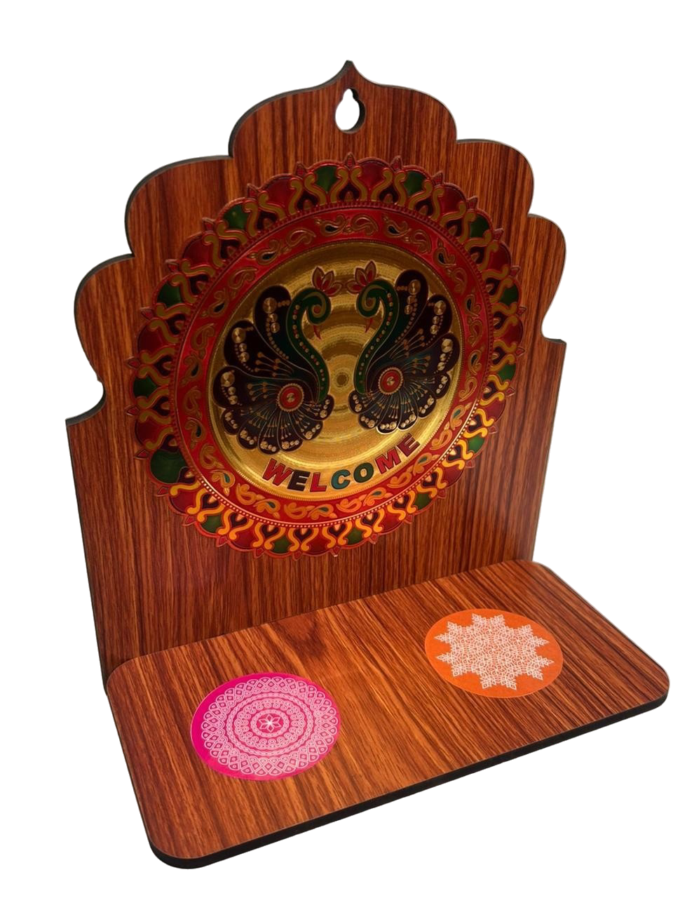 Beautiful MDF Wall Hanging with traditional Kolam sticker design, crafted to enhance your home décor with a cultural touch. Measuring 23cm height and 20cm width, this lightweight and durable 1-piece MDF wall décor is perfect for pooja rooms, entrances, and festive decorations. Proudly Made in India, ideal for traditional homes and thoughtful gifting.