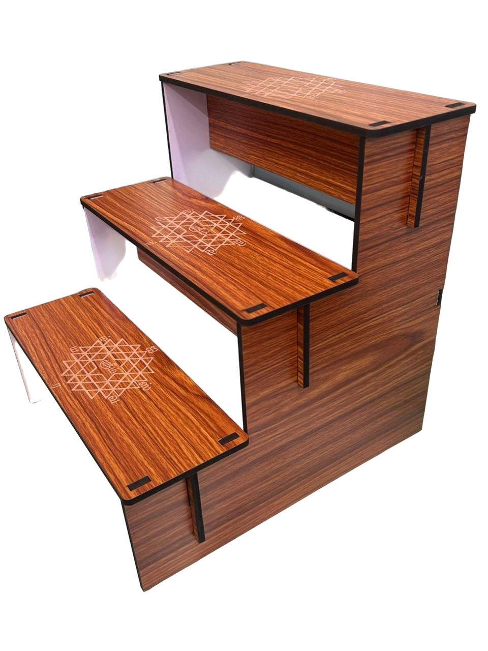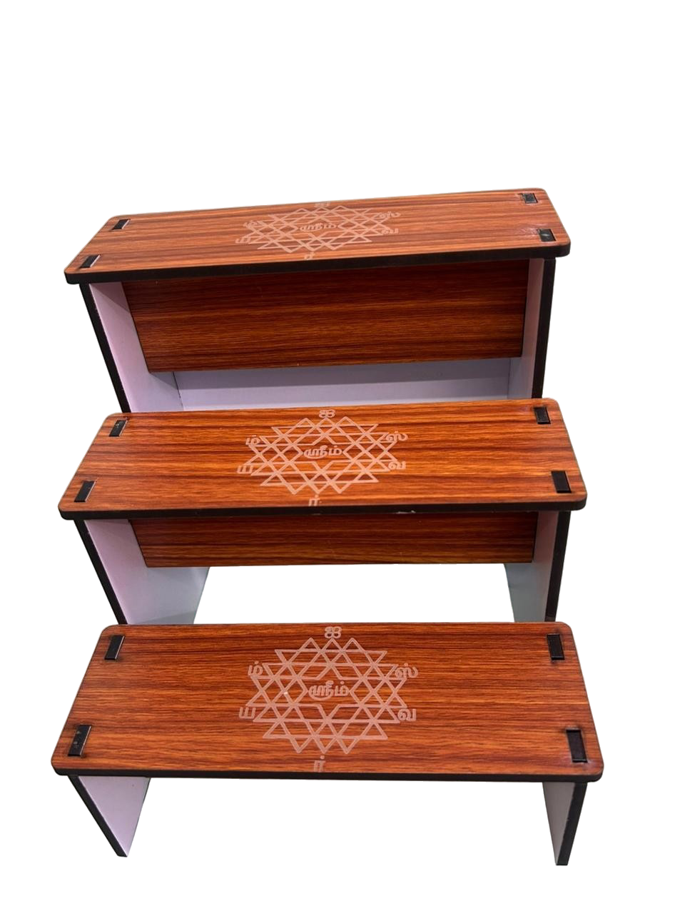 Premium Miniature 3 Steps MDF Golu Stand crafted from durable MDF wood, perfect for displaying dolls and idols during Navaratri Golu celebrations. Measuring 24.5cm (L) x 23.5cm (B) x 25cm (H), this sturdy and lightweight stand is ideal for festive décor, pooja arrangements, and miniature displays. Reusable, strong, and proudly Made in India, suitable for traditional home celebrations and gifting.